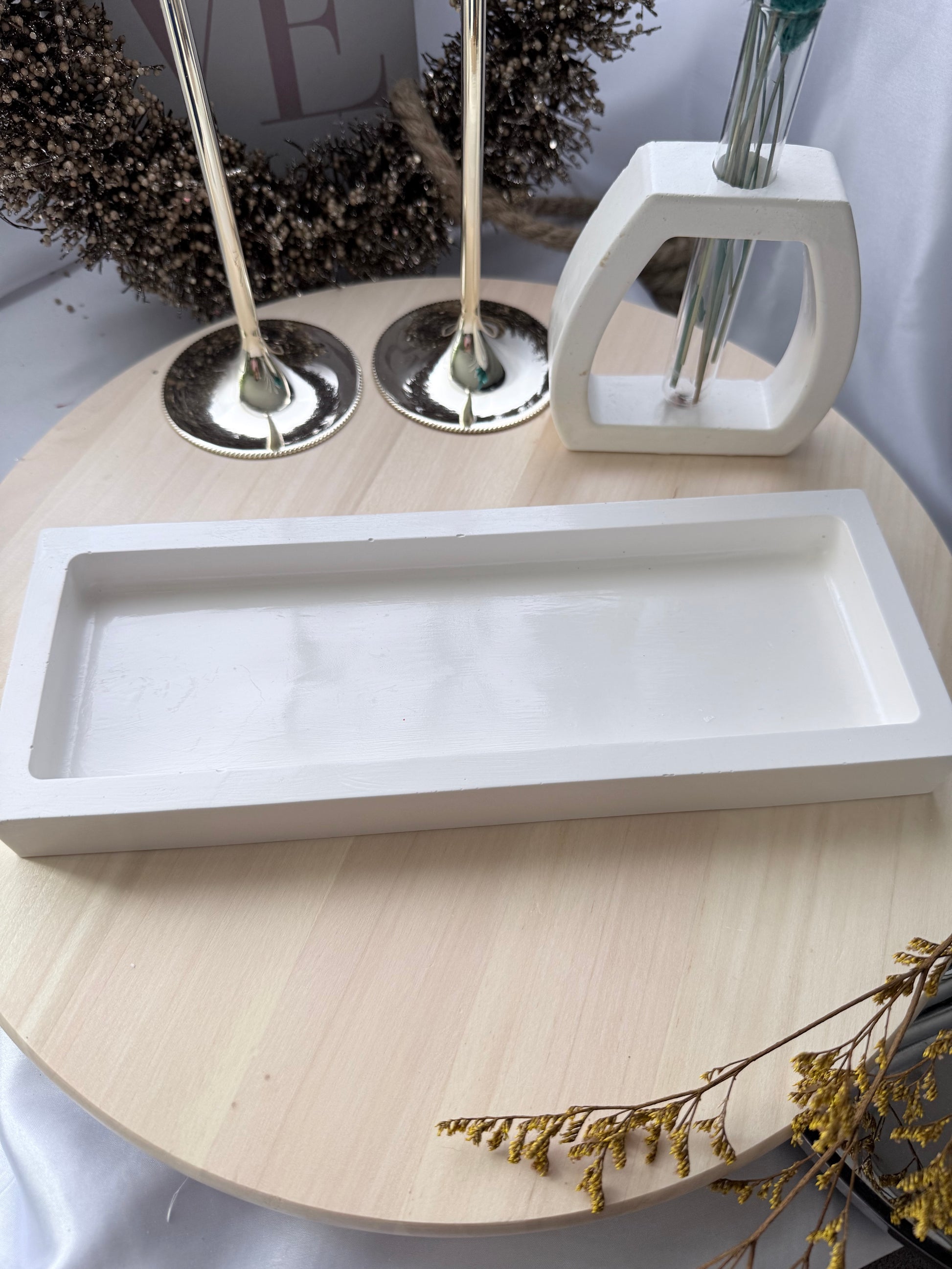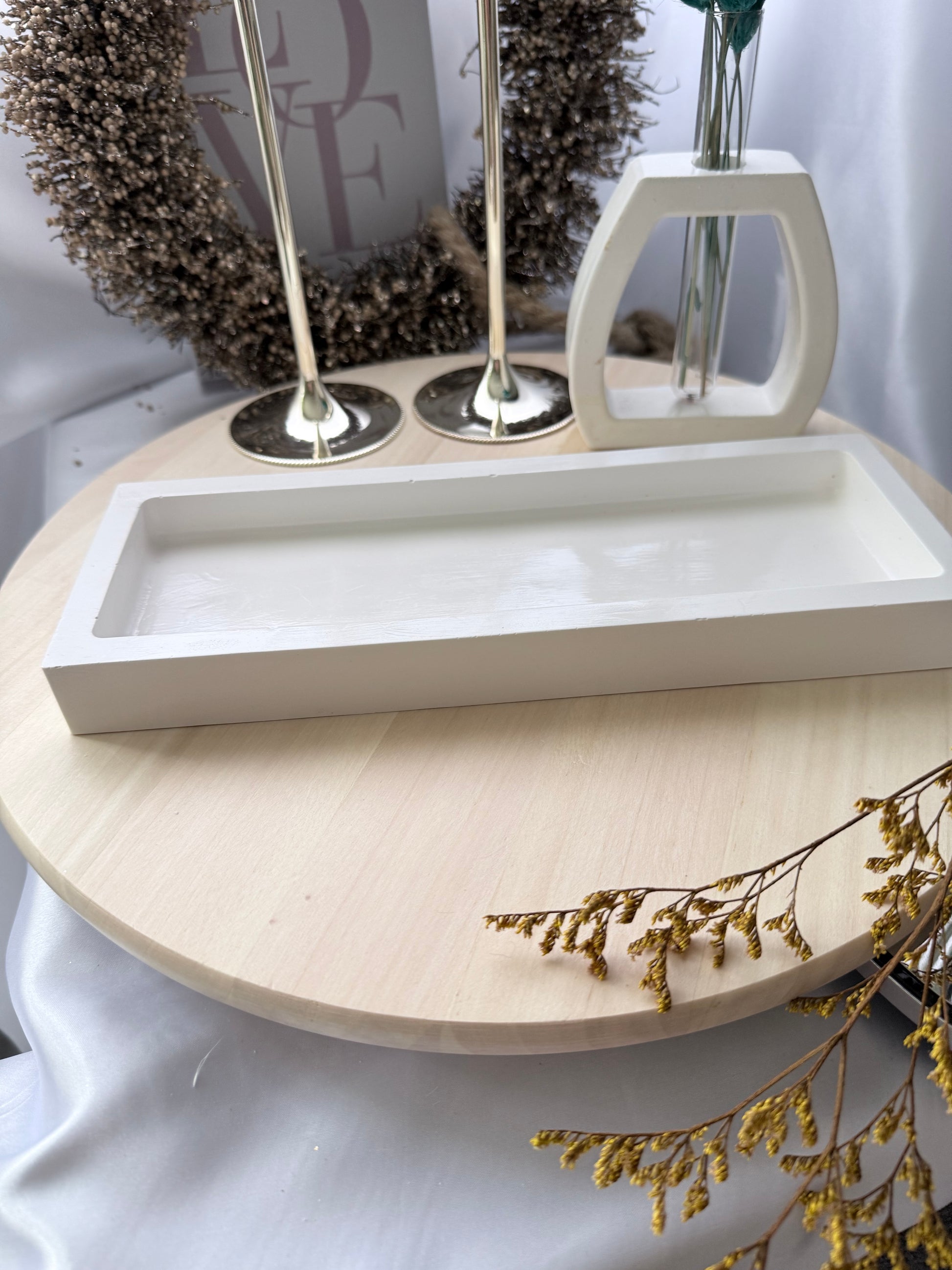 Sencilla, elegante y funcional. Elaborada a mano con resina ecológica, esta bandeja rectangular combina un diseño minimalista con un acabado suave y luminoso que se adapta a cualquier estilo de decoración.