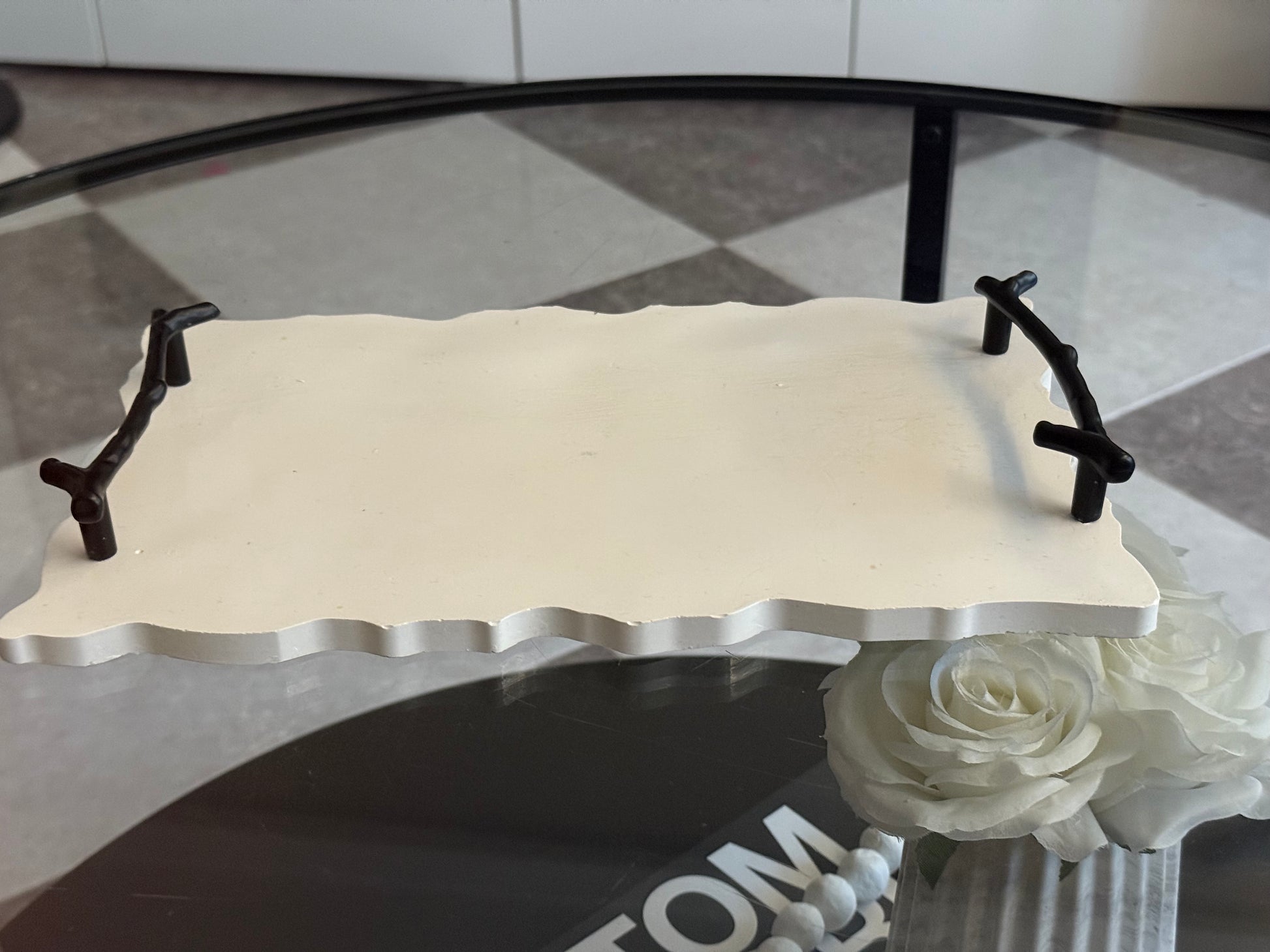 Bandeja Orgánica con Asas Metálicas Negras