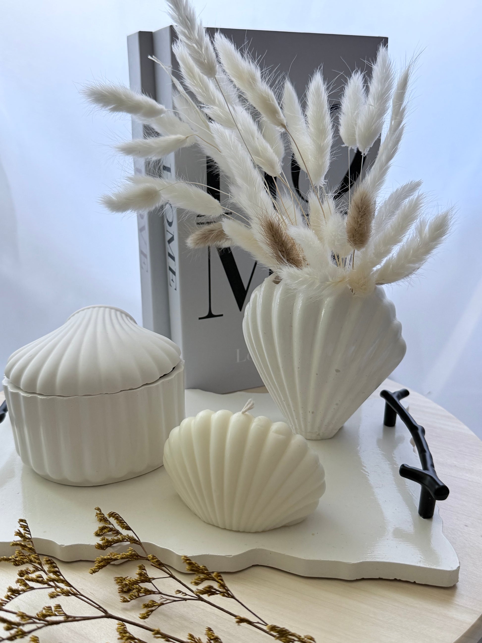 Diseñada para destacar con elegancia y estilo, esta bandeja artesanal está elaborada a mano con resina ecológica y presenta asas metálicas en color negro, que aportan un contraste moderno y sofisticado. Sus bordes orgánicos reflejan la belleza de lo natural, haciendo de cada pieza una creación única. Ideal para usar como base decorativa, en mesas auxiliares o para organizar tus objetos con un toque minimalista y contemporáneo.