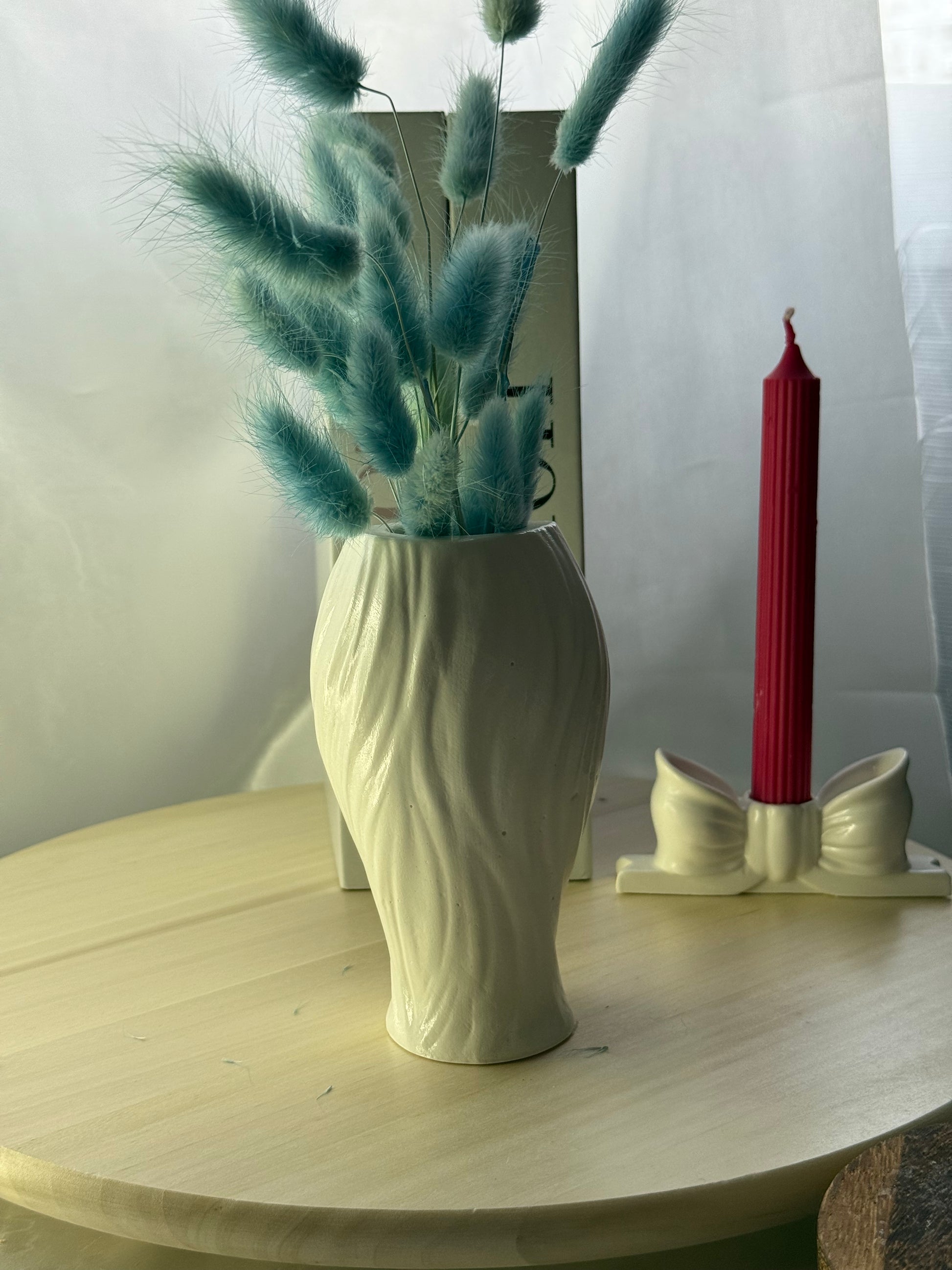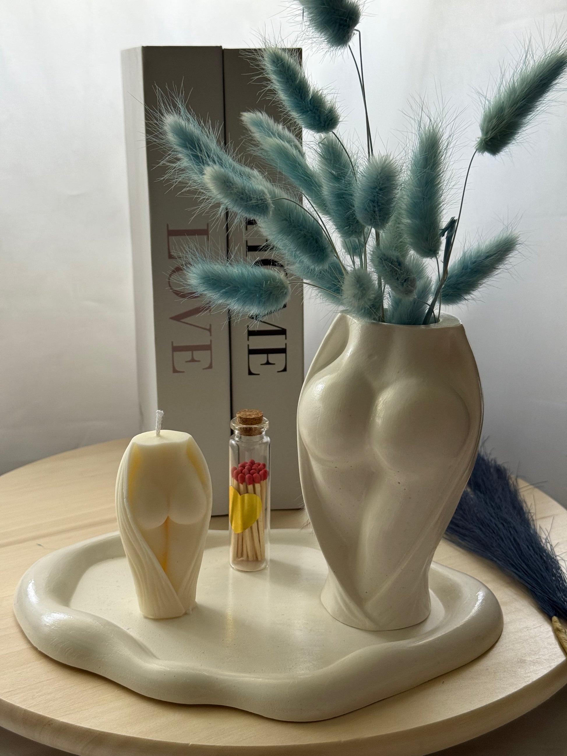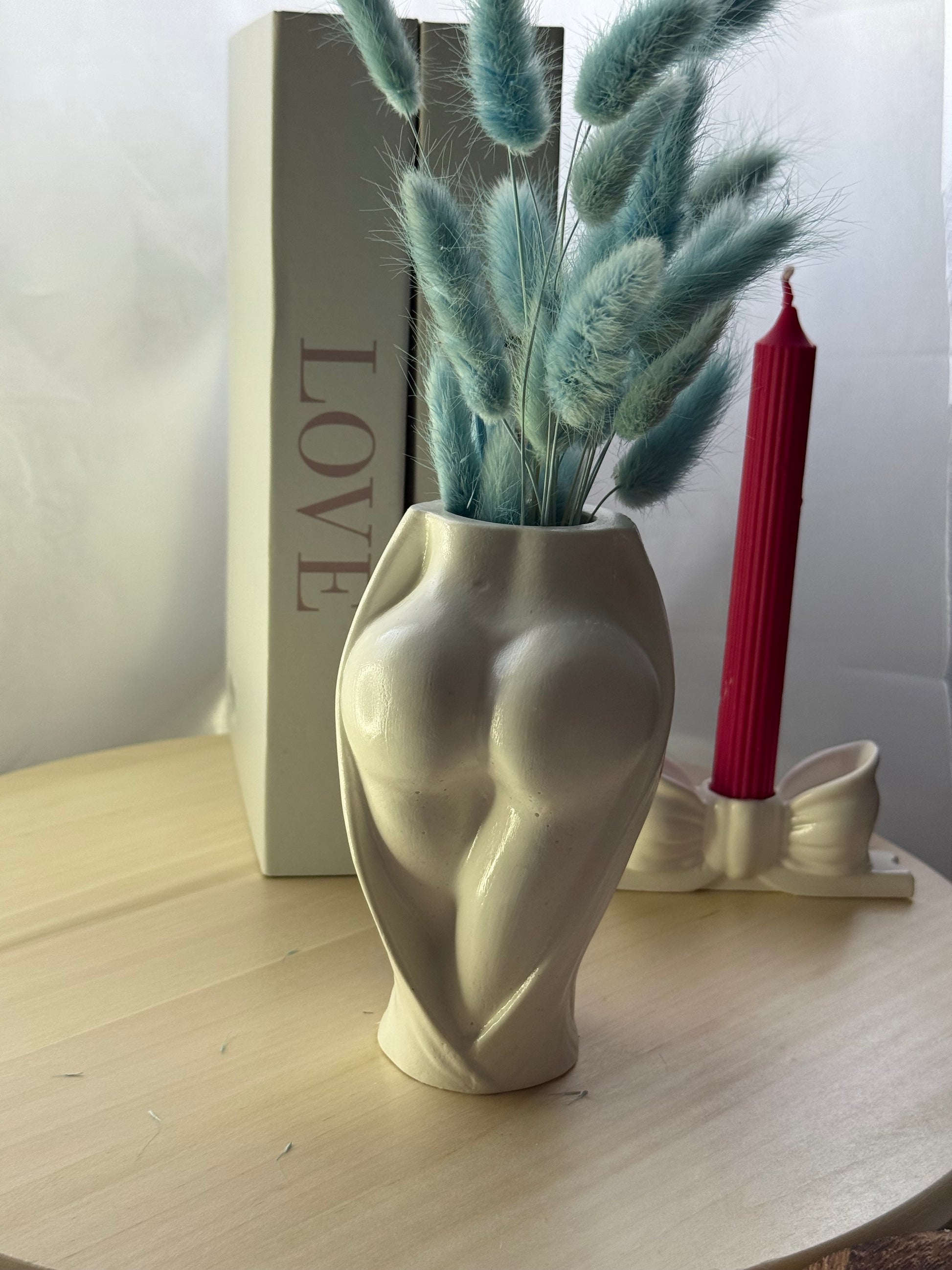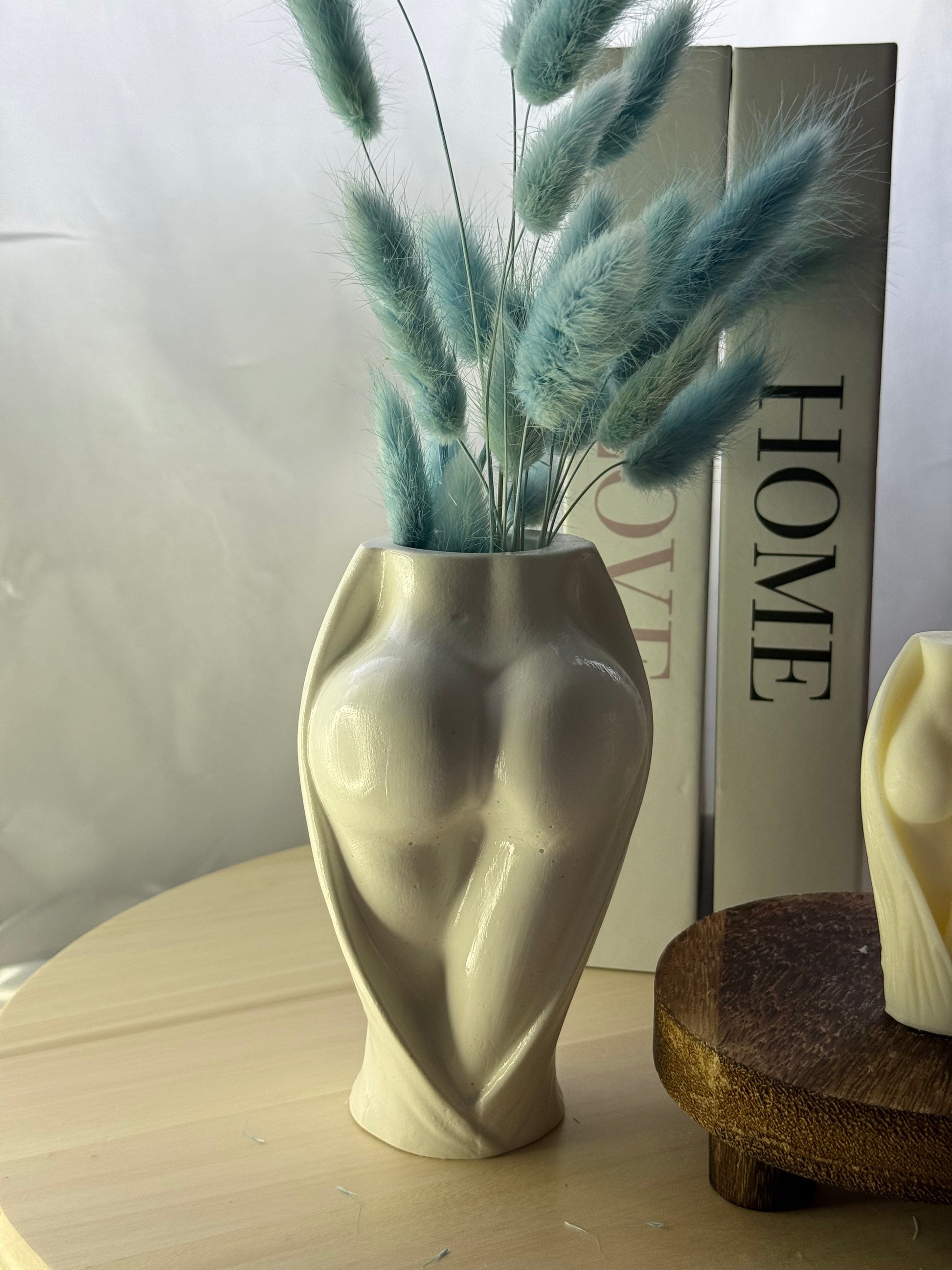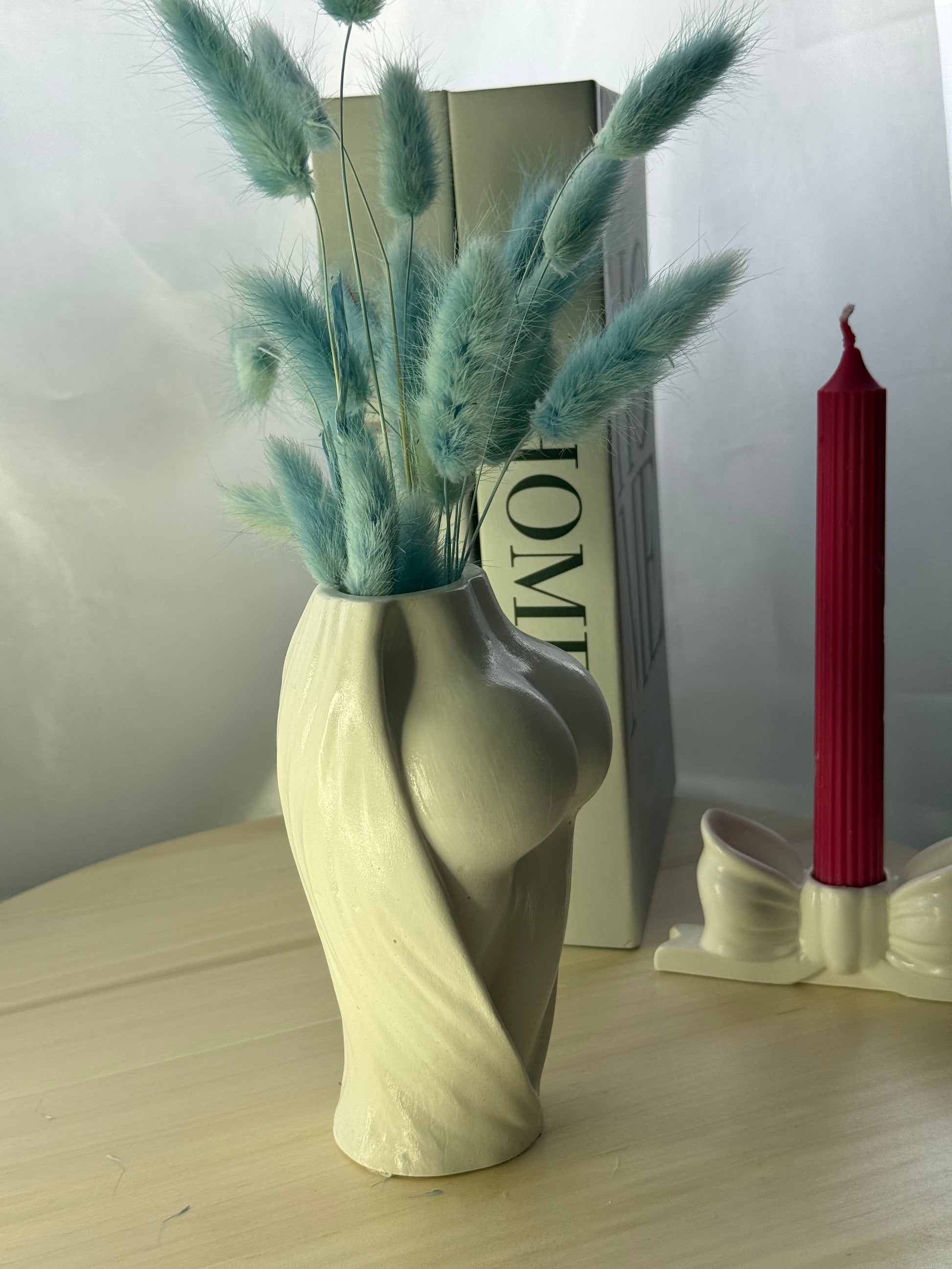 Jarrón artesanal de resina ecológica con diseño inspirado en la silueta femenina, acompañado de flores secas naturales. Una pieza única que combina arte, sostenibilidad y elegancia, ideal para dar un toque sofisticado y lleno de simbolismo a tu hogar. Cada creación es hecha a mano, lo que la convierte en un detalle exclusivo y especial.