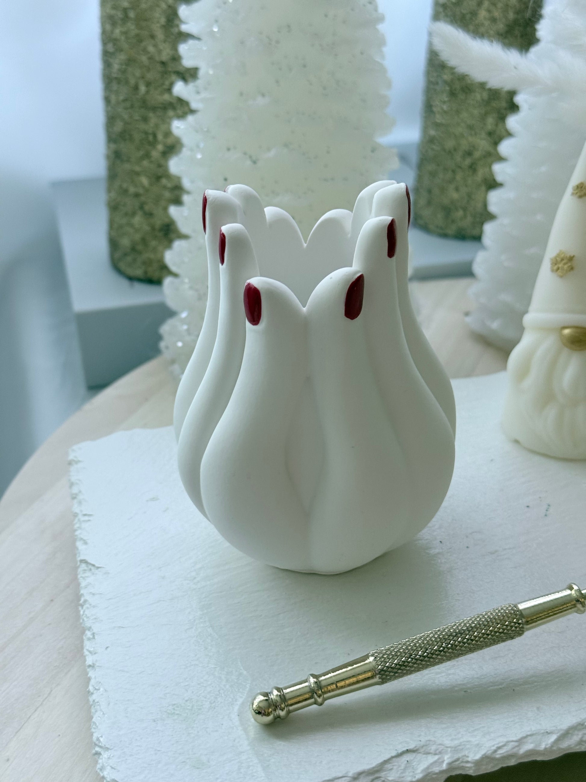 El “Manos que Acompañan” es un florero artesanal elaborado en resina ecológica, una pieza que une sostenibilidad, arte y diseño contemporáneo. Su forma escultórica de manos entrelazadas abraza con suavidad cada flor, creando una presencia cálida y sofisticada en cualquier espacio.