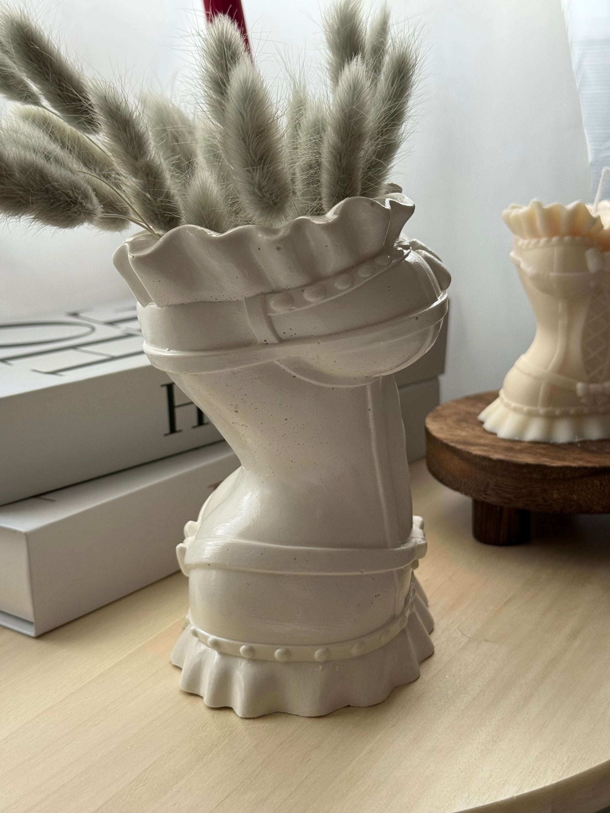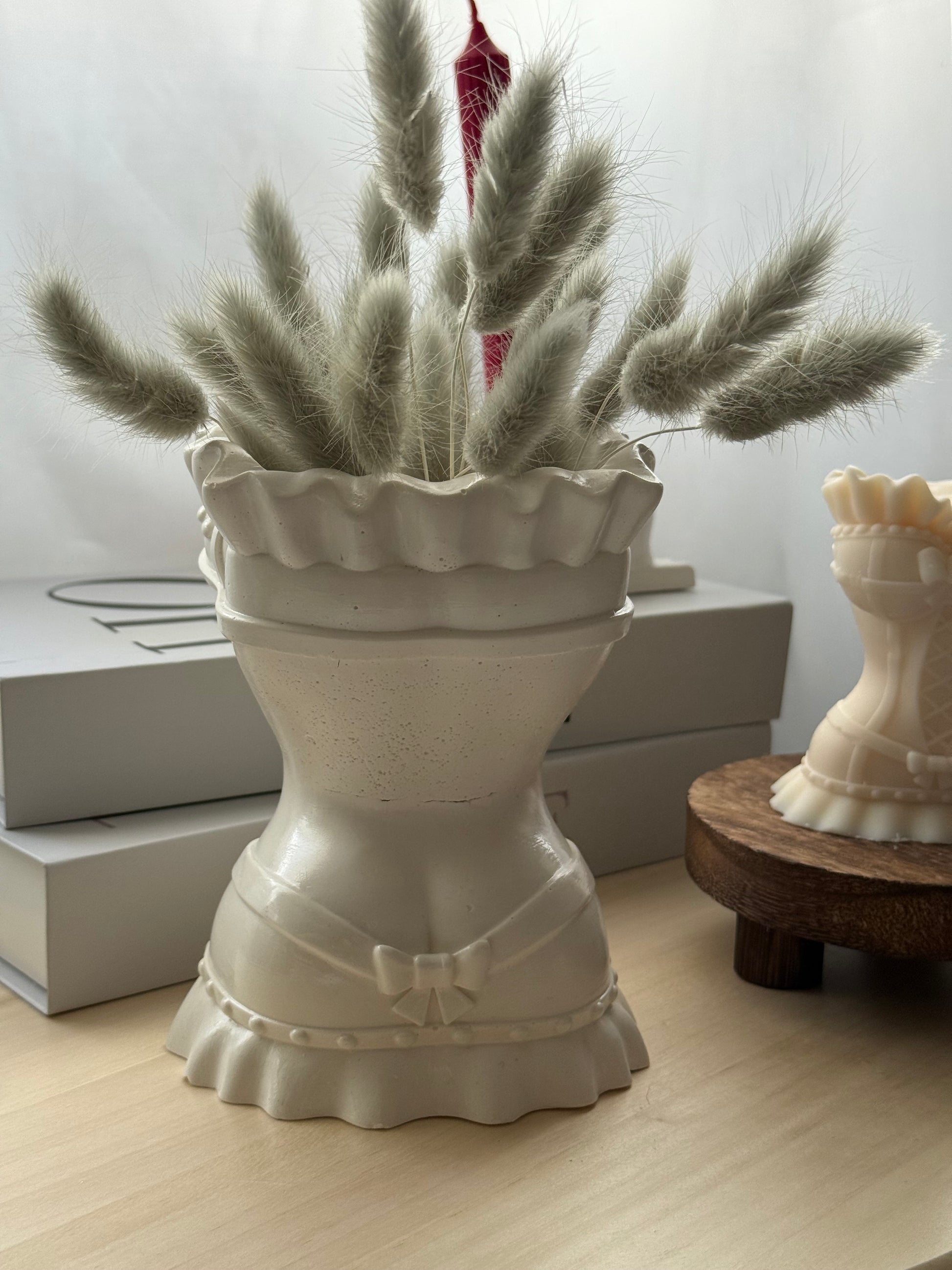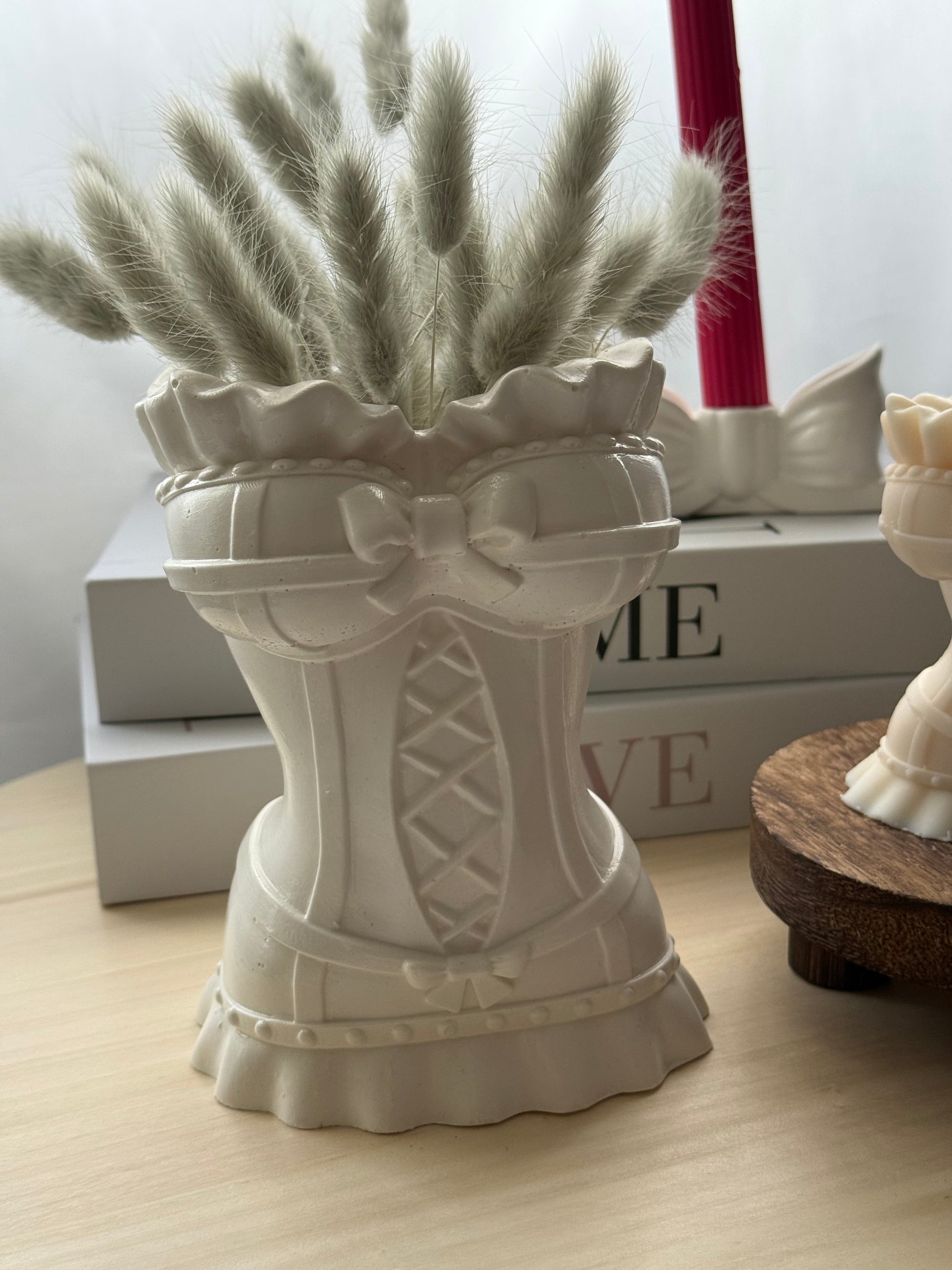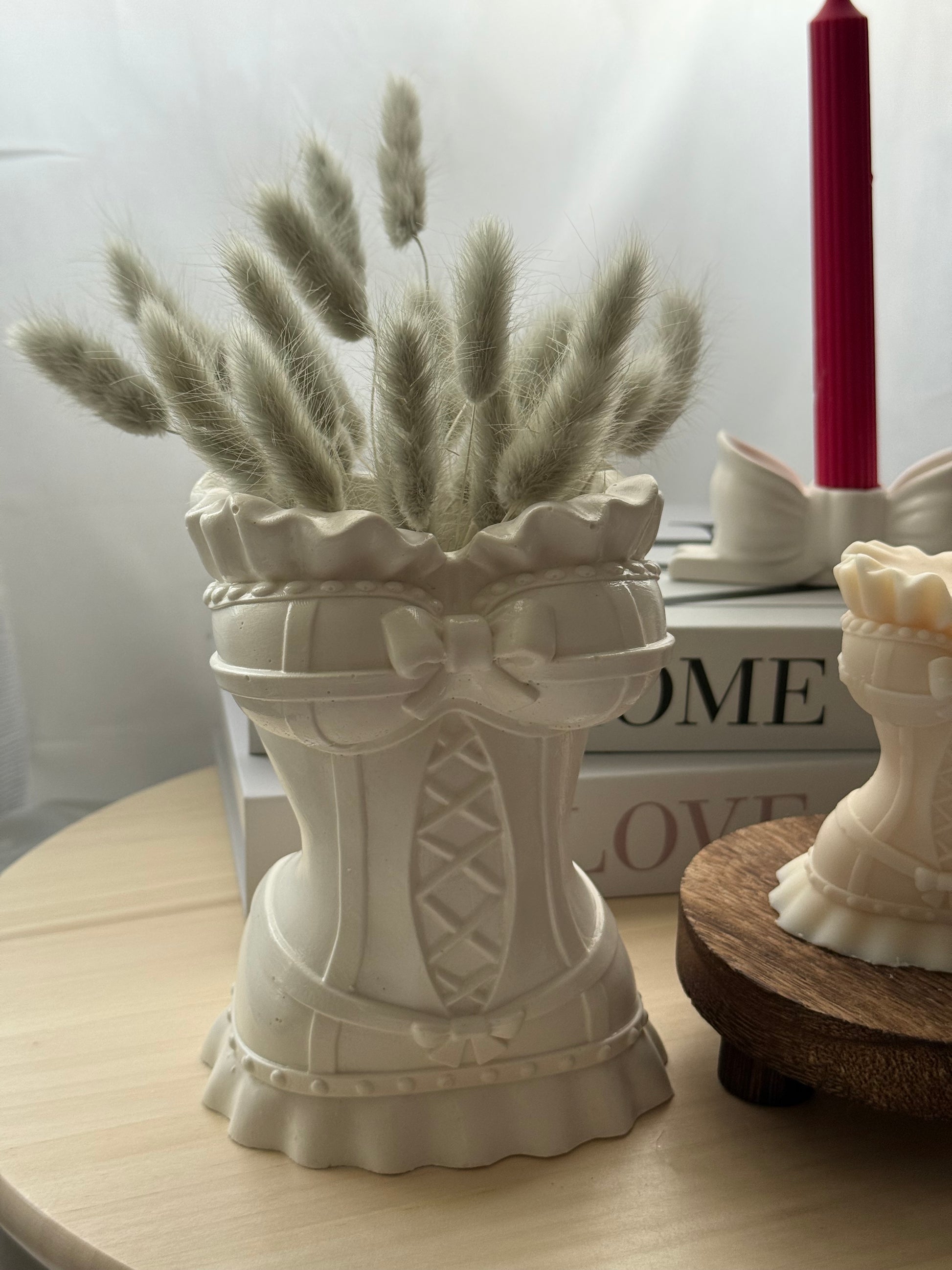 Una pieza única que convierte cualquier espacio en una obra de arte. El Jarrón Corset fusiona elegancia y sofisticación en cada detalle: su diseño inspirado en la alta costura lo hace irresistible y perfecto como centro de atención en tu hogar.
