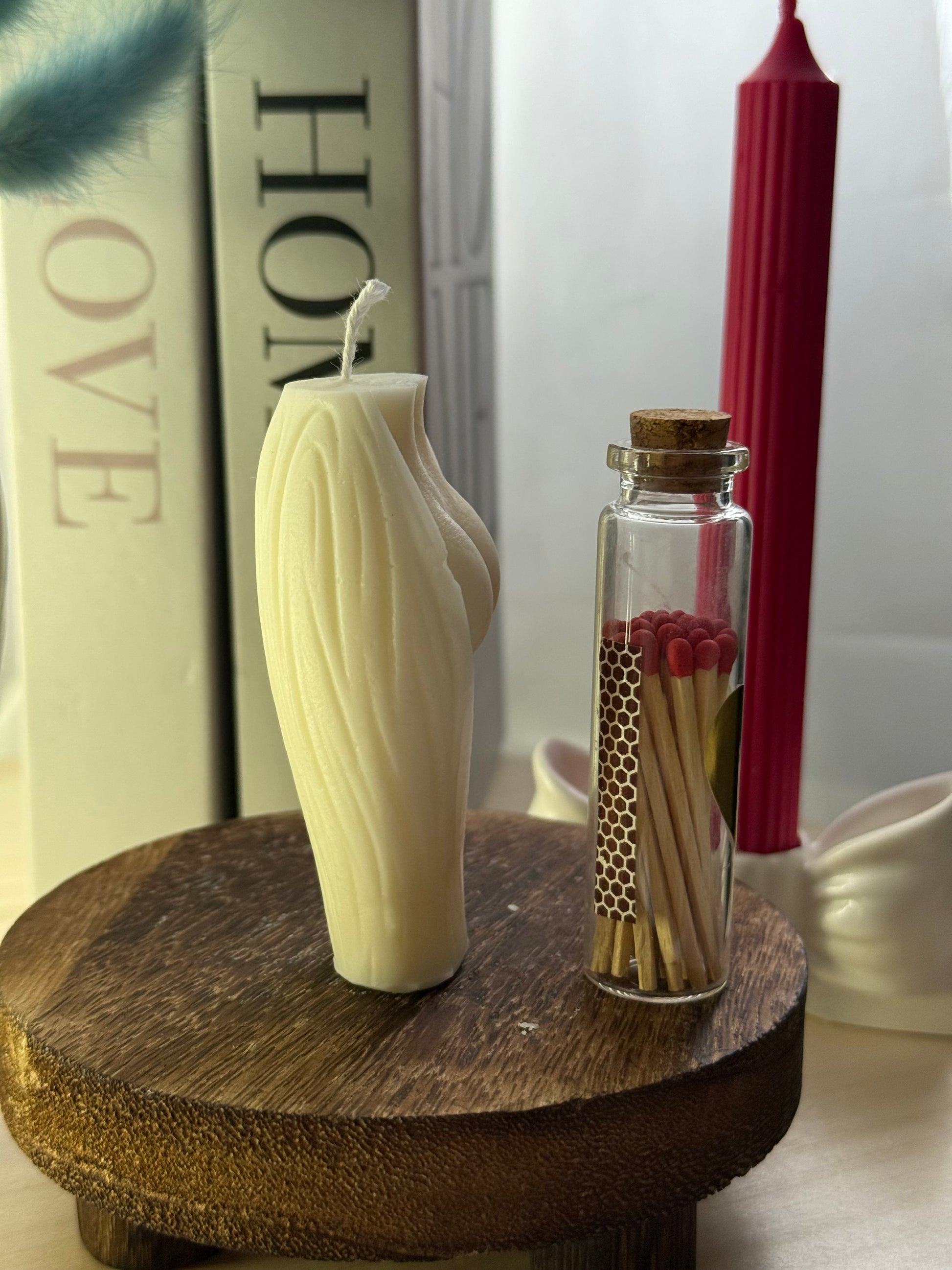 Vela artesanal elaborada a mano con cera ecológica, inspirada en la belleza del cuerpo femenino. Su diseño único la convierte en una pieza decorativa con gran carácter artístico, capaz de transformar cualquier espacio en un rincón lleno de elegancia y estilo. Ideal como detalle especial para regalar o como toque distintivo en tu hogar.