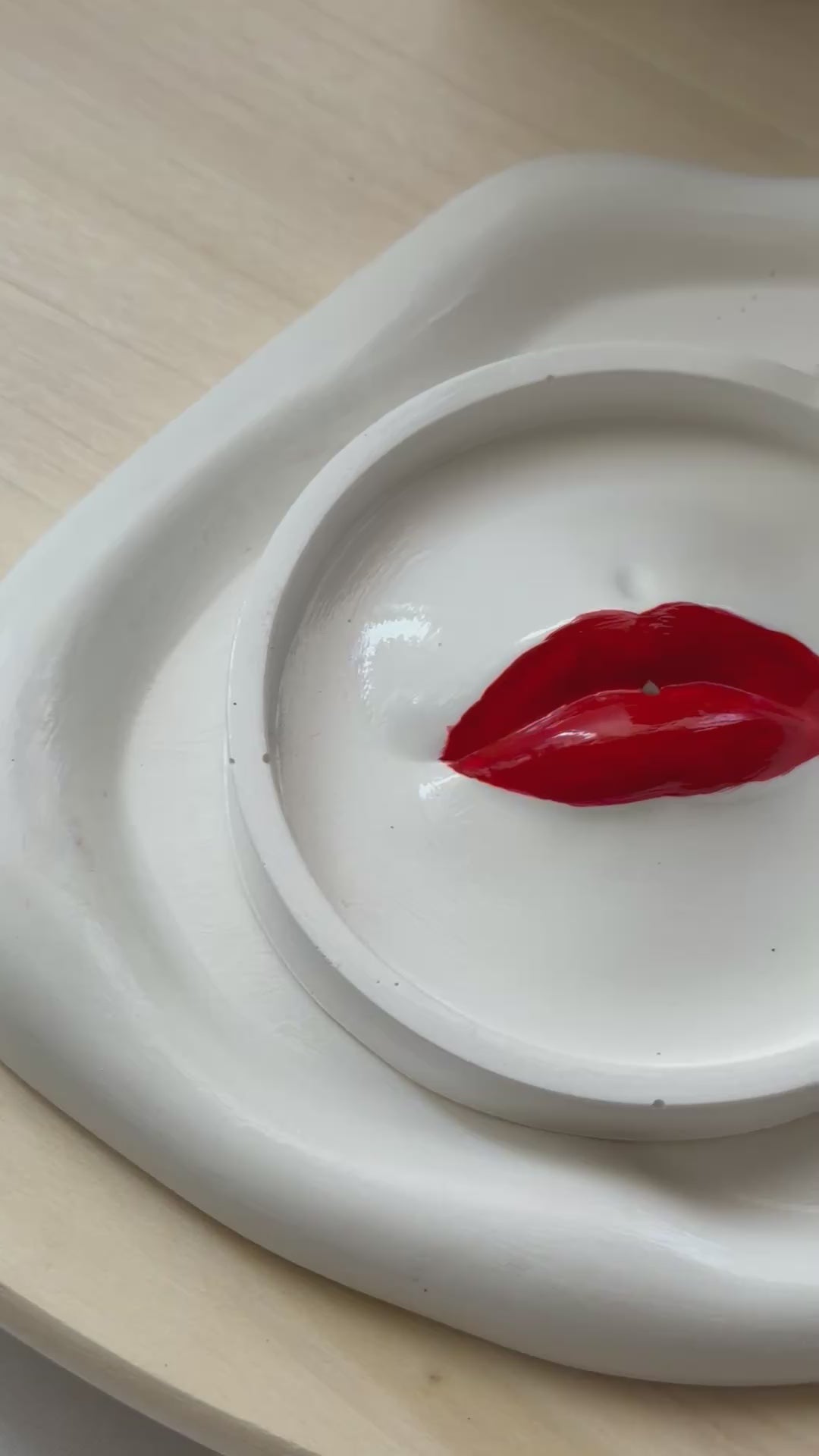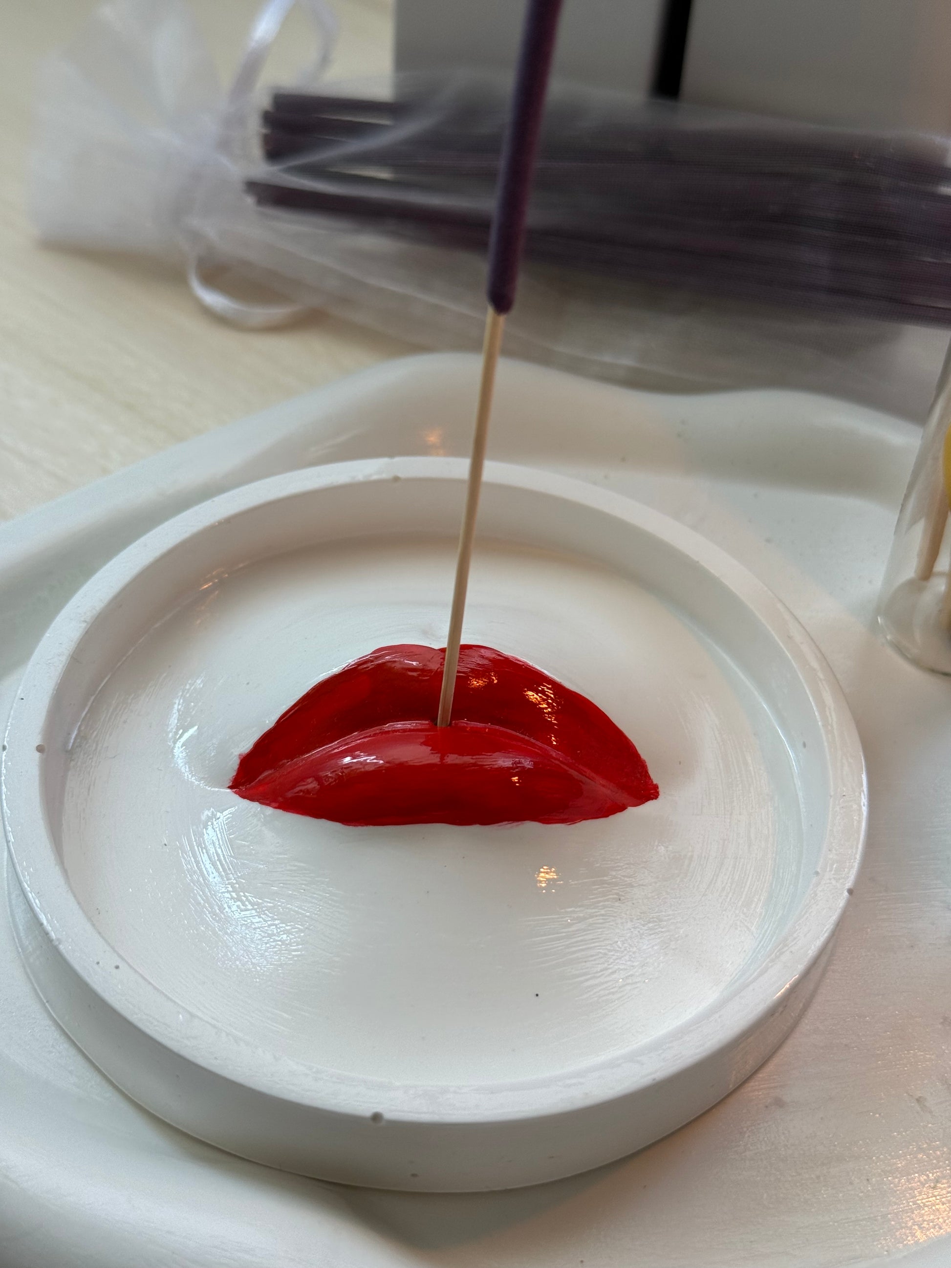 “Un porta inciensos lleno de personalidad y estilo. Sus labios rojos aportan un toque atrevido y elegante, convirtiendo cada rincón en un espacio con carácter. Perfecto para quienes buscan unir aroma, diseño y arte en la decoración de su hogar.”