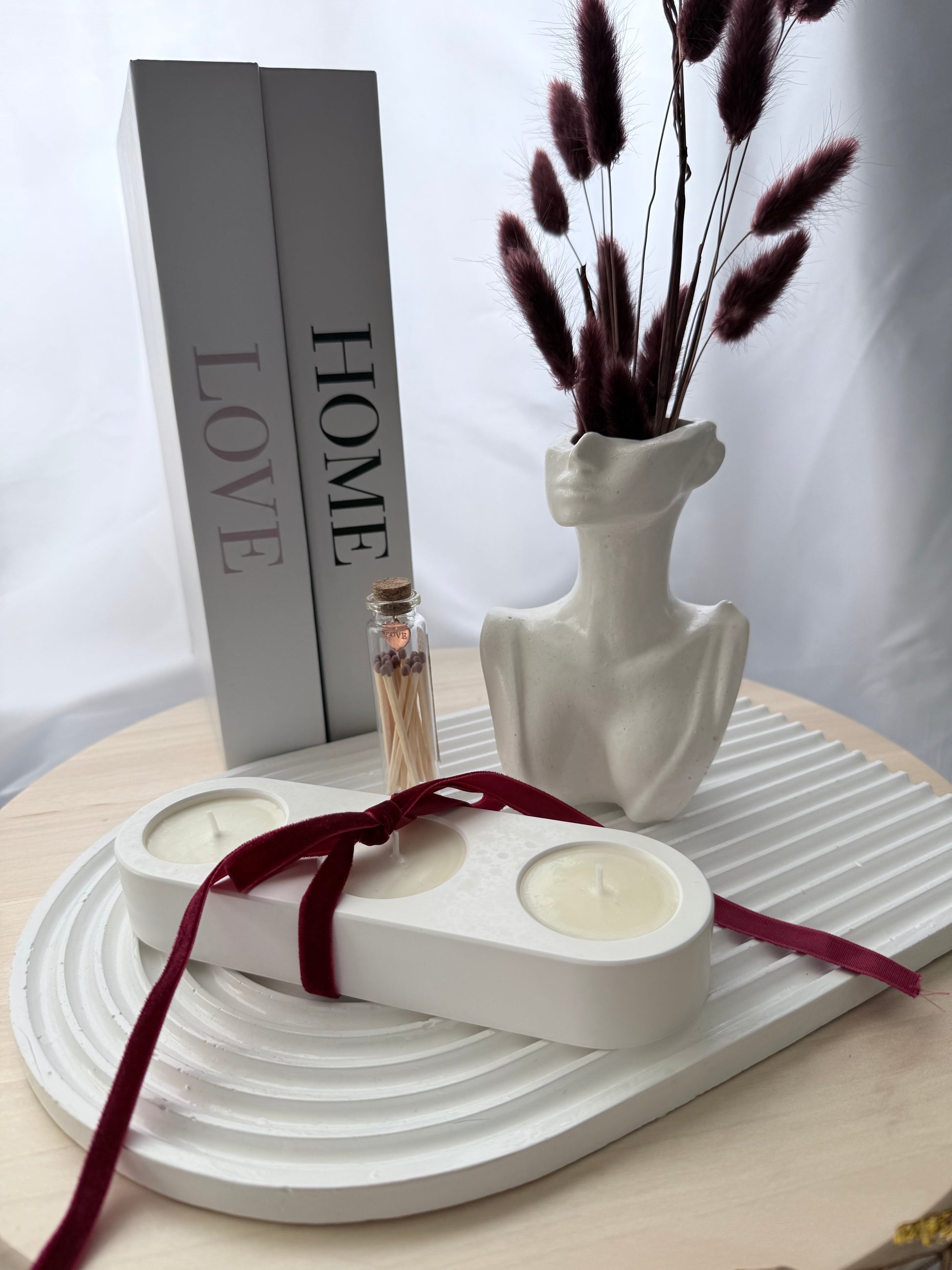 Porta velas decorativo de diseño minimalista y elegante, ideal para crear un ambiente cálido y acogedor. Perfecto para decorar cualquier espacio o acompañar momentos especiales.