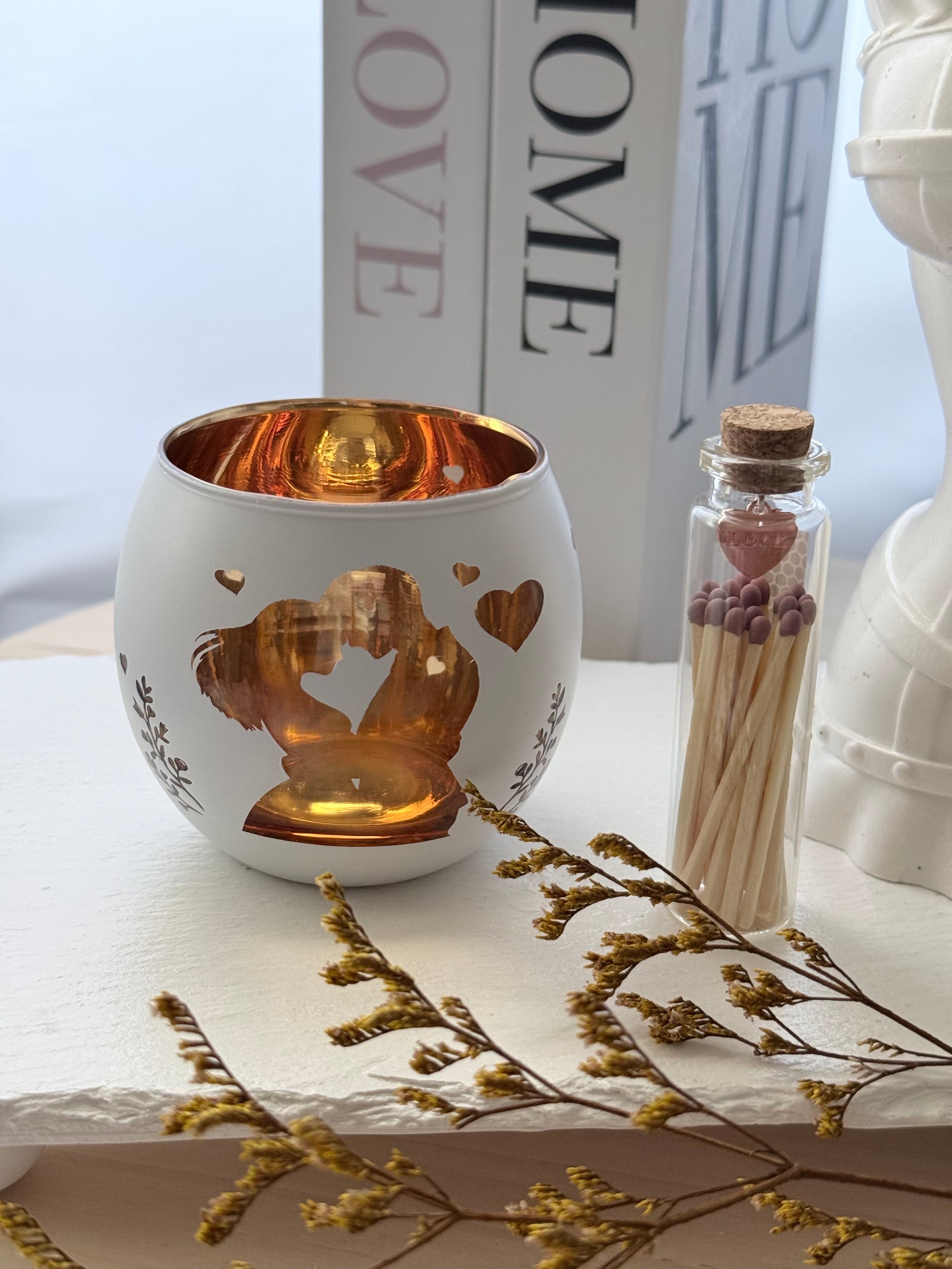 Ideal para decorar salas, dormitorios, mesas auxiliares o para regalar en ocasiones especiales como aniversarios, bodas o San Valentín. Compatible con velas tipo tealight o velas pequeñas.