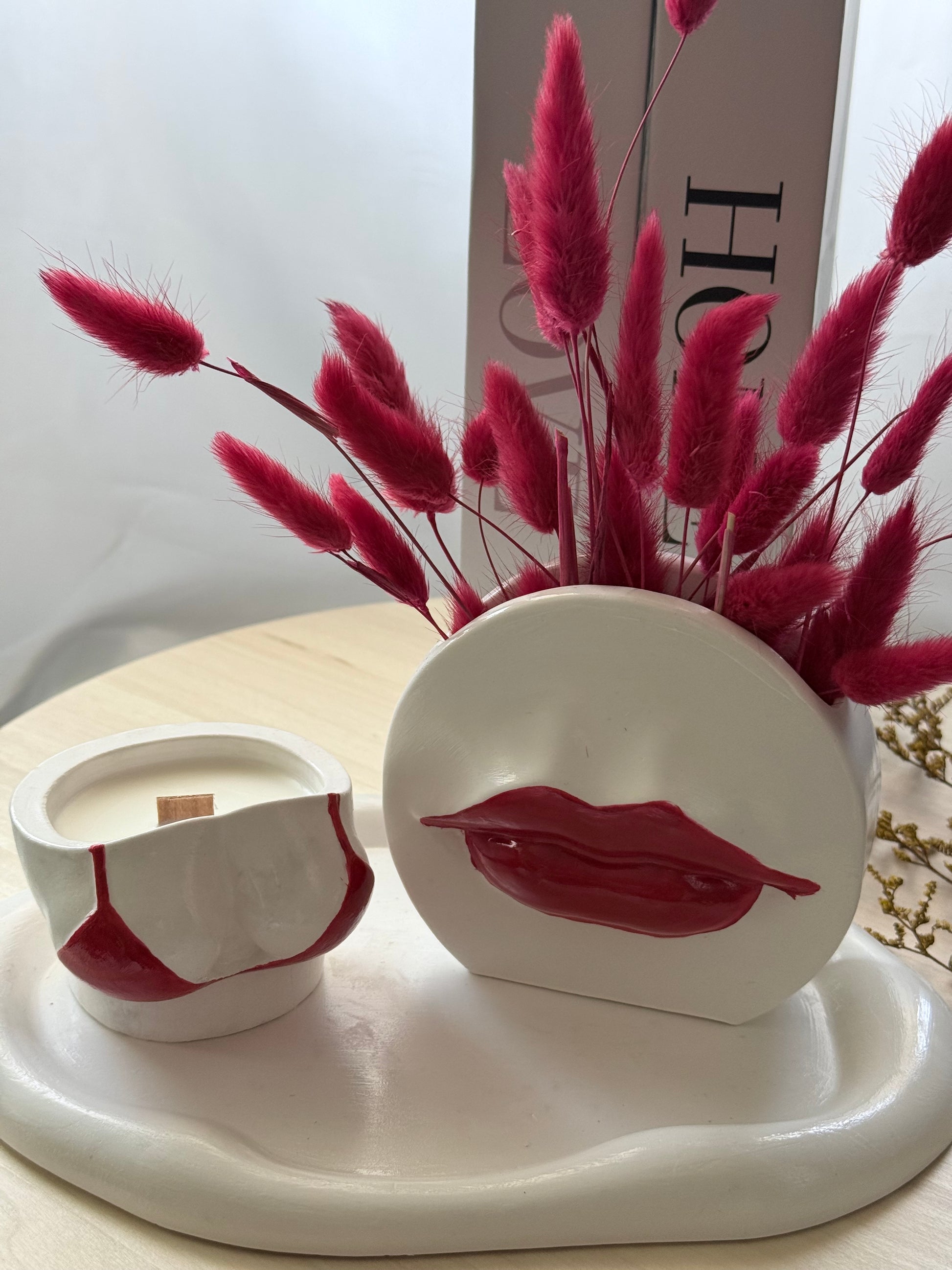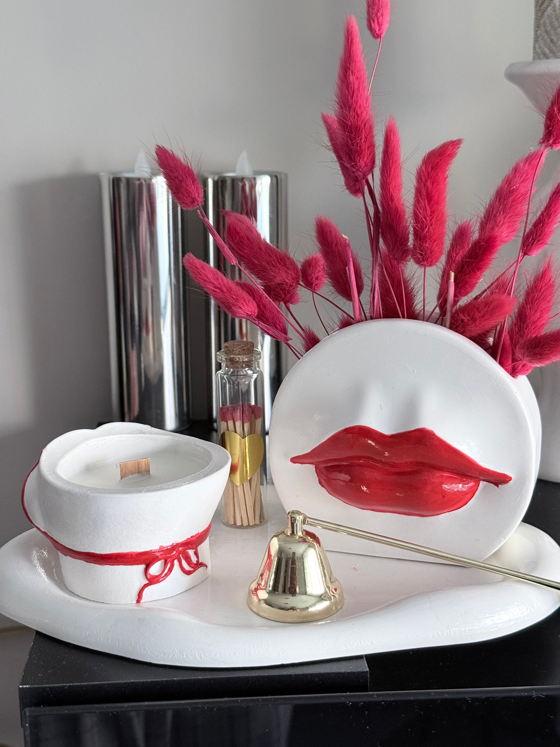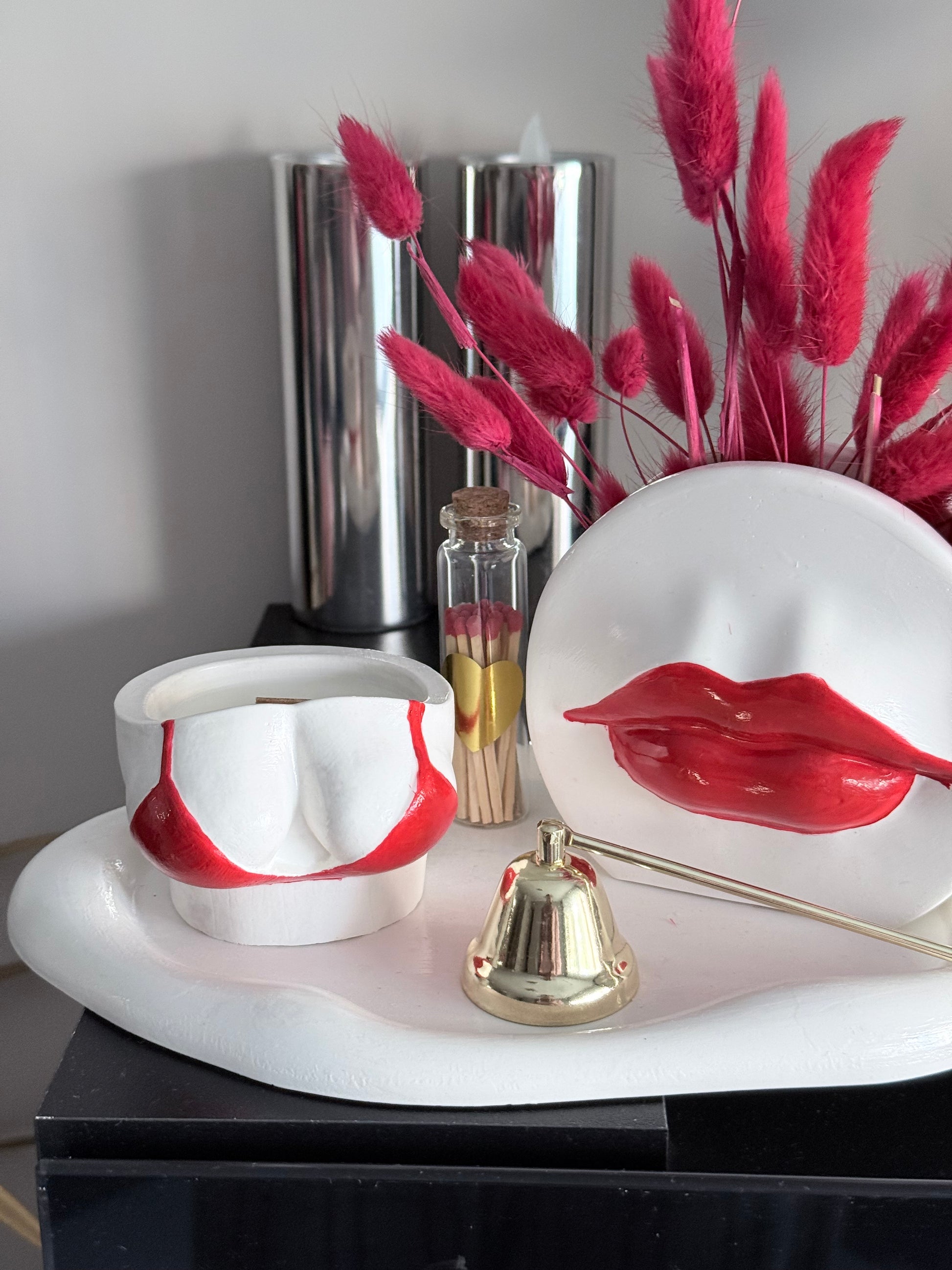 Una creación audaz y femenina que combina diseño y aroma en perfecta armonía. Elaborada a mano con cera natural y resina ecológica, esta vela destaca por su original envase artístico y sus detalles en tonos rojos, símbolo de pasión y energía.