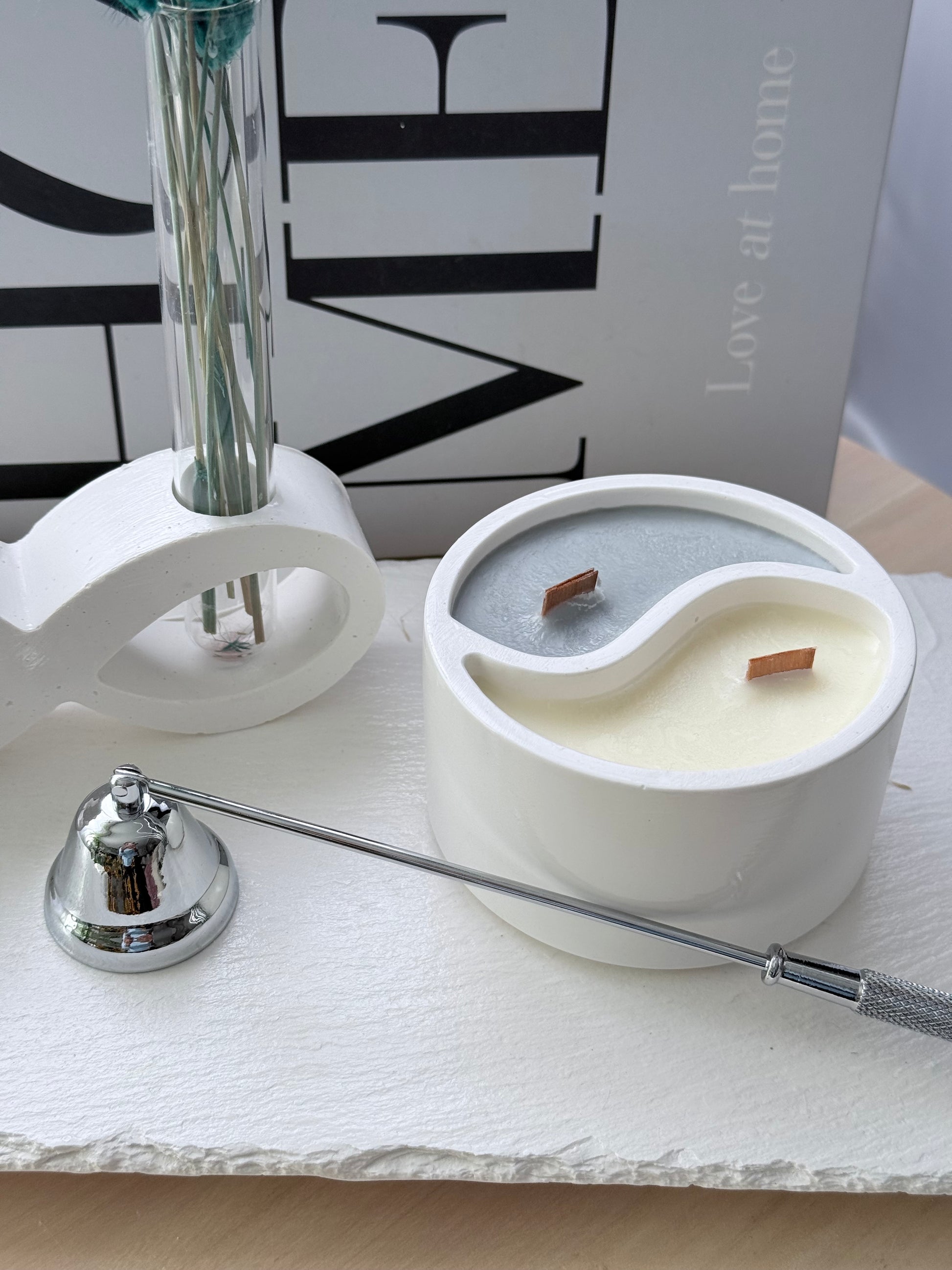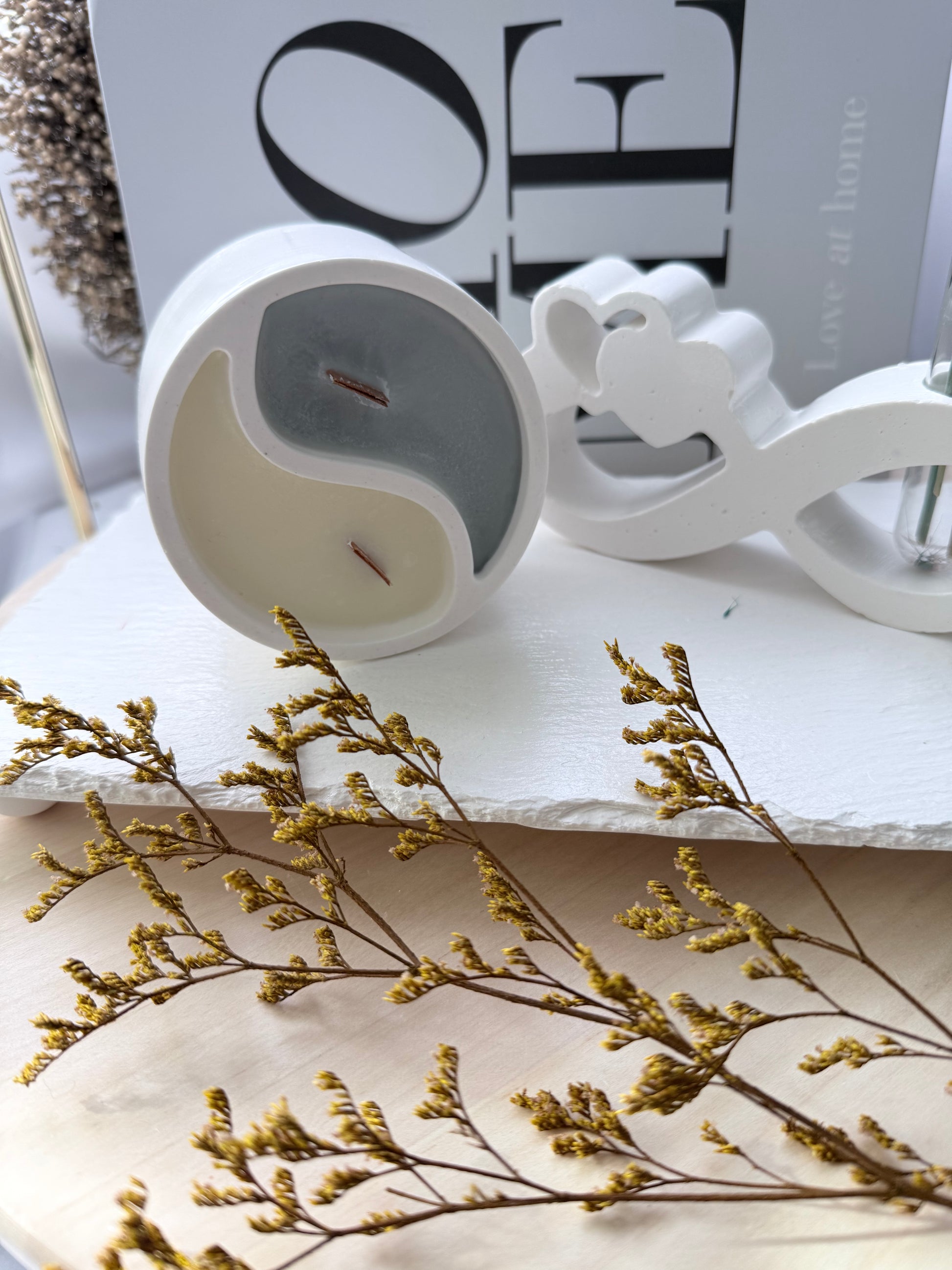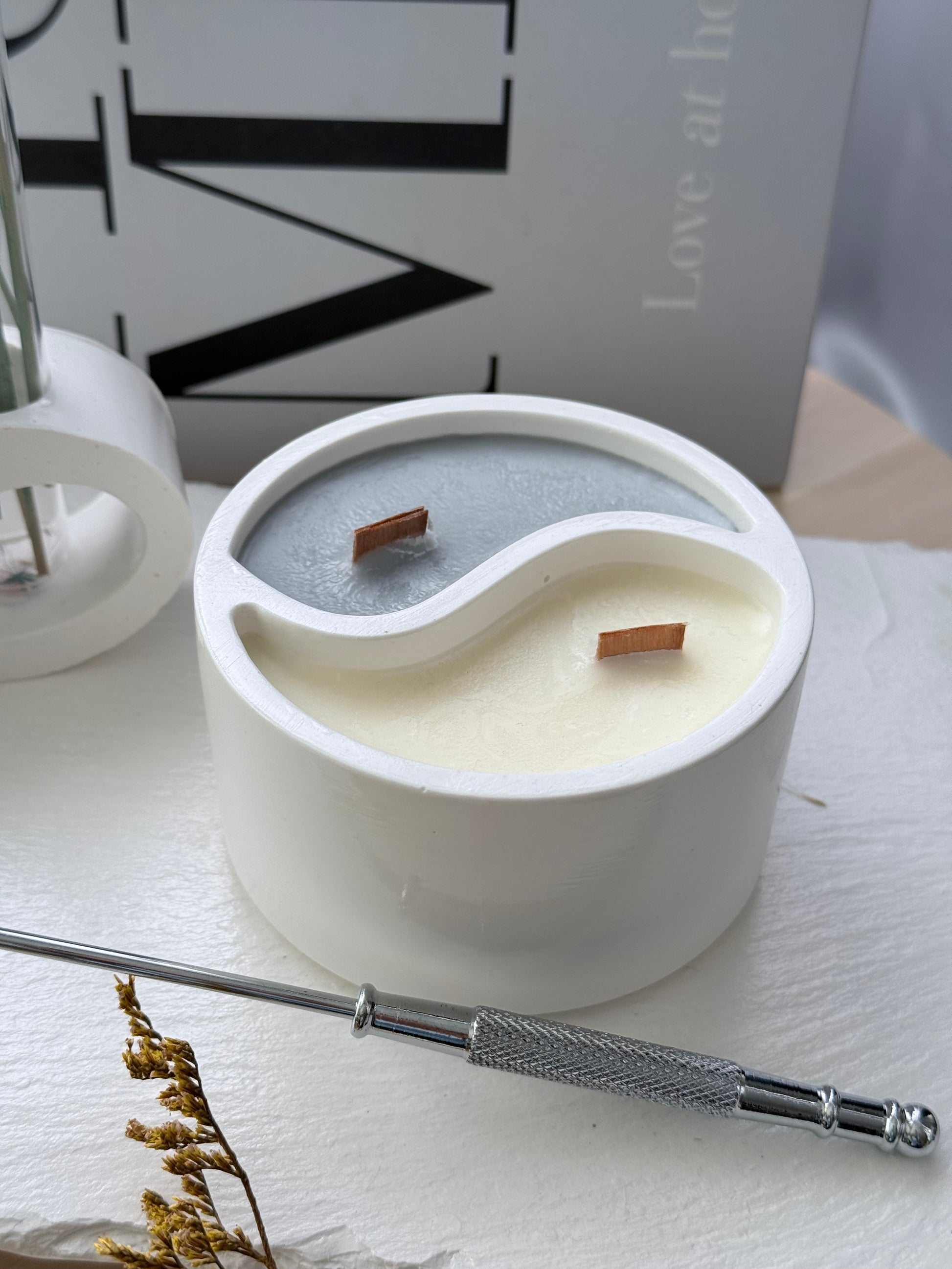 Con un diseño en resina blanca de líneas suaves y armoniosas, esta vela representa la unión perfecta entre elegancia y serenidad. Su doble composición simboliza el balance entre la luz y la calma, mientras su fragancia de mirra y sándalo envuelve el ambiente con notas cálidas, amaderadas y profundamente espirituales.